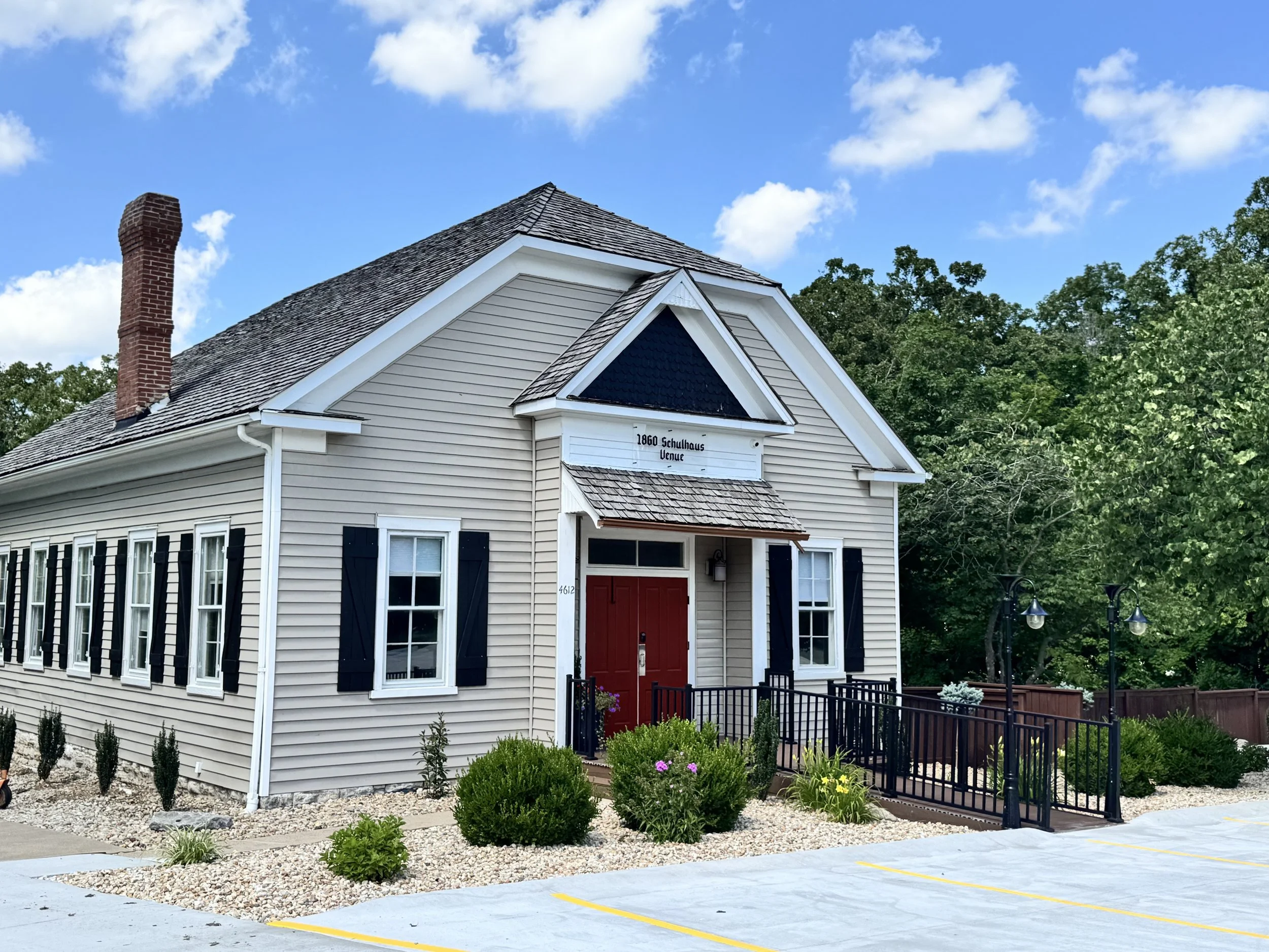 Located in New Melle, Missouri—just outside St. Louis and minutes from Wentzville and St. Charles—1860 Schulhaus offers a peaceful, scenic setting that’s still easy for guests to access.